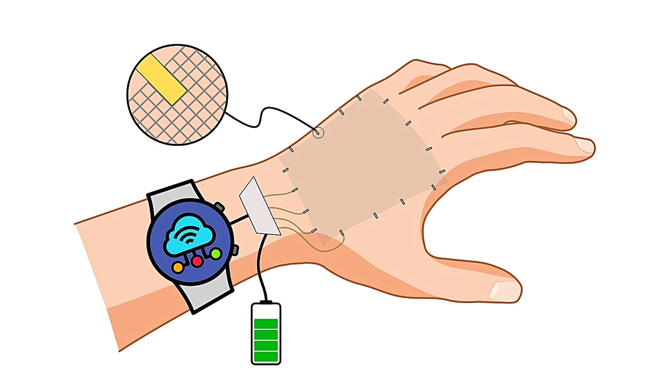 The researchers therefore replaced rigid, bulky substrates that usually host electronics with a thin, light, and flexible membrane that is just a few micrometers thick. The entire membrane is optically transparent and perforated, making the artificial skin permeable to air and moisture, allowing the real skin underneath to breathe.