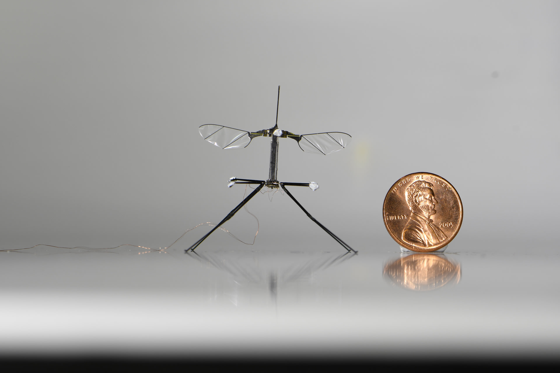 The Harvard RoboBee has long shown it can fly, dive, and hover like a real insect. But what good is the miracle of flight without a safe way to land? A storied engineering achievement by the Harvard Microrobotics Laboratory, the RoboBee is now outfitted with its most reliable landing gear to date, inspired by one of nature’s most graceful landers: the crane fly.