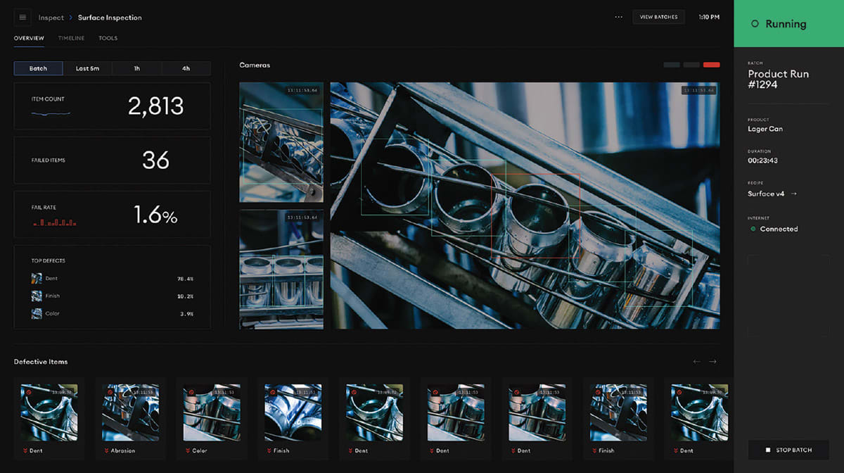 The system’s AI-powered inspection tools perform defect detection and classification, multi-class sorting, presence-absence verification, OCR reading, barcode scanning, and color analysis. Each edge vision controller accommodates up to eight cameras for complex manufacturing setups. Control system integration works through industry-standard protocols including Ethernet/IP, Modbus TCP, and Allen-Bradley PLC Tag Client.