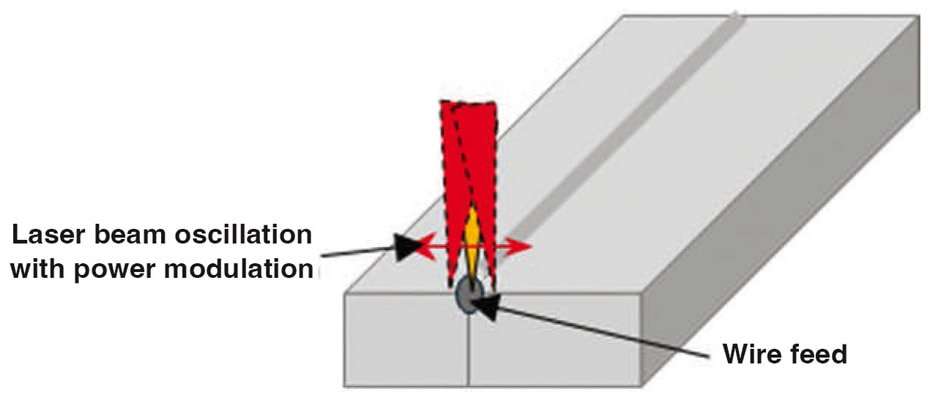 Also, this laser beam modulation method helps widen the cross-section of the weld seam and improve process stability. In addition to spatial modulation, Temporal power modulation is also used. It means that the laser’s power is carefully controlled and varied over time during welding, which helps stabilize the process and improve overall weld quality. Moreover, different levels of laser power can be set on both sides of the groove compared to the power on the wire, allowing for more precise control over the weld properties.