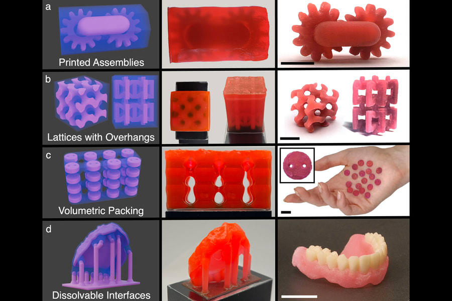The researchers applied the new method to print complex structures, including functional gear trains and intricate lattices.