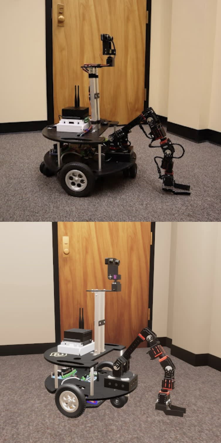 00:00:00 [equipment squeaking] (Xavier O'Keefe) The task was to identify which of the three antennas was misaligned, drive up to it, pick it up, rotate it to be aligned how it should, and then leave. On the moon there's going to be, you know, a lot of missions, a lot of things going on, hopefully soon. Potentially deploying as many as 100,000 antennas. And that would be a real pain for human operators to do manually with their hands. And the robot allows for that extra degree of precision that humans may not have. [squeaking] The big picture idea is to develop a training platform for telerobotics on the moon. So, on the moon there's a lot of missions that need to be done with robots and the cost of failure is a lot higher. You know, it's a multi-million or billion dollar mission. So we want operators to be able to train on a very realistic high fidelity simulation on Earth