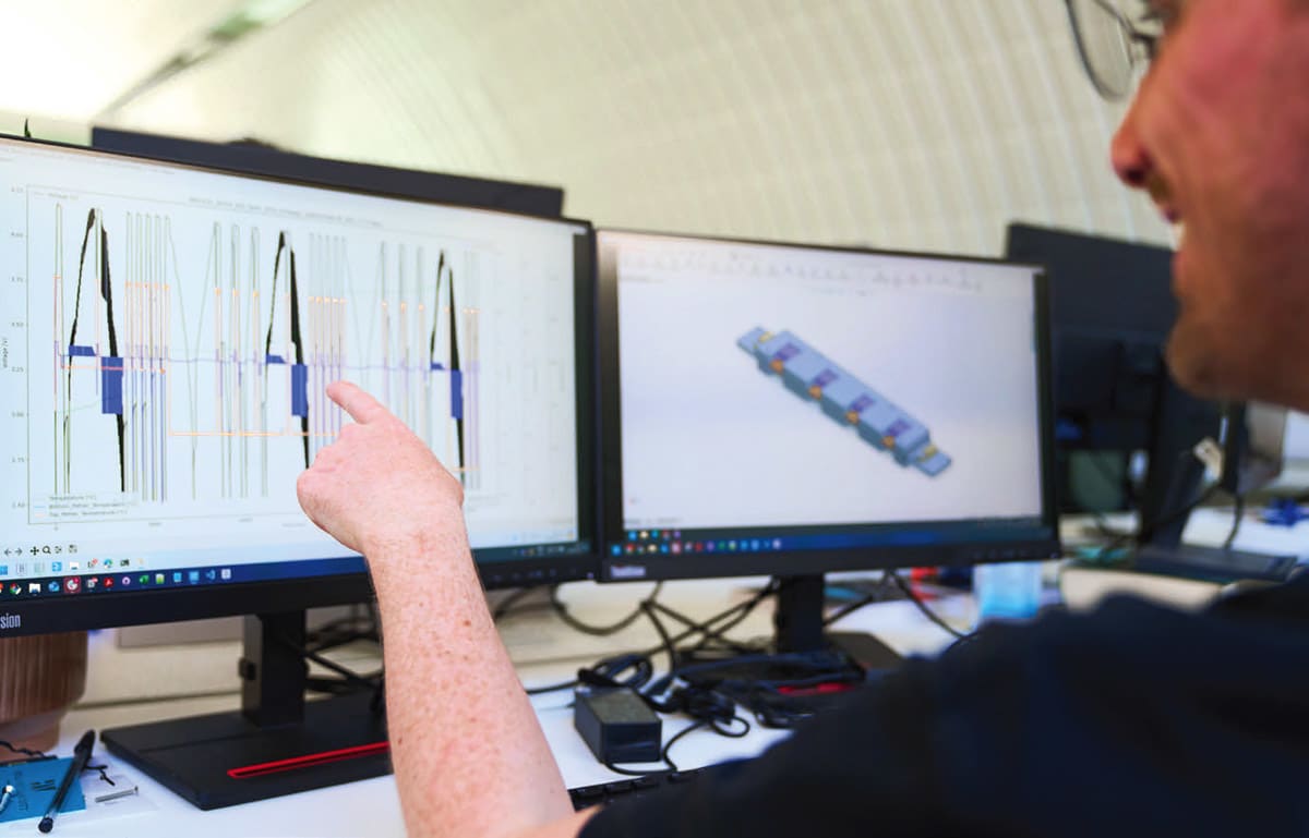 McMurtry’s engineering team set out to build a battery system that could deliver maximum power while staying within safe thermal and electrical limits. Their goal was to synchronize temperature and state of charge (SoC) so both approached their operational thresholds at the same time. Achieving that delicate balance meant simulating thermal and electrical behavior early in development, which is important to achieve before committing to costly prototypes. With simulation, they could model and refine system behavior under stress, enabling peak performance on track with minimal downtime.