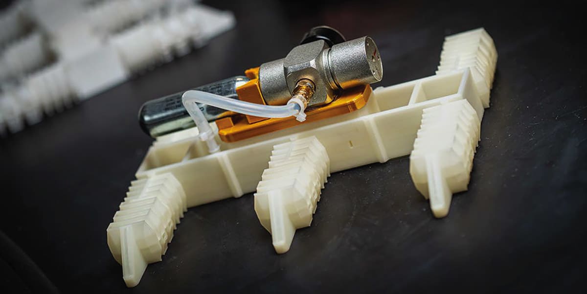 Imagine a robot that can walk, without electronics, and only with the addition of a cartridge of compressed gas, right off the 3D printer. It can also be printed in one go, from one material.