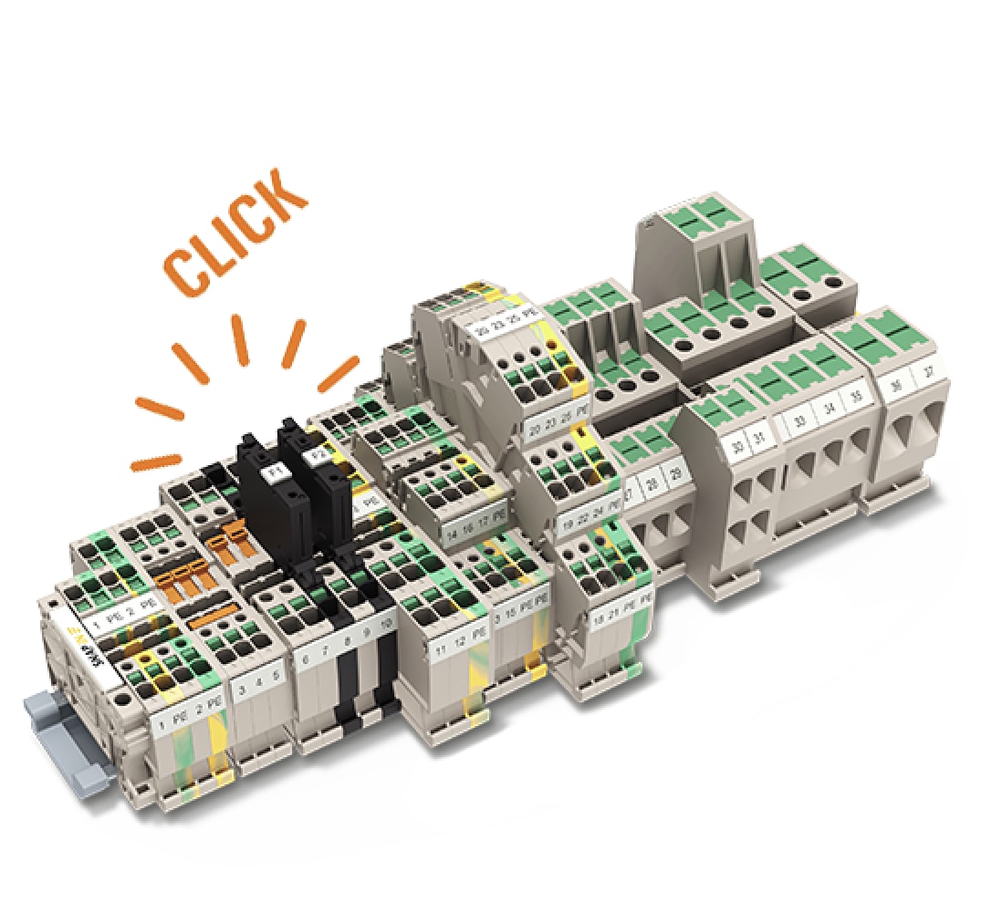 The innovation behind SNAP IN doesn’t serve any specific industrial segment, but instead provides a trusted technology for any environment where efficient, effective connections are required. SNAP IN currently supports any business using between 22 and 4-gauge wires in control cabinets, such as intralogistics, industrial automation, data centers and process industries (e.g. food and beverage, oil and gas). Users can apply this technology to any signal wiring or power distribution project. The latest releases include disconnect and fuse terminals in addition to the already available feedthrough and ground (PE) terminal blocks.