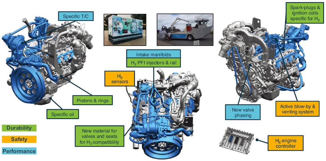 Incumbent diesel ICEs can generally accommodate all of these conditions, and so an effective low-carbon strategy is to replace diesel with a low or zero carbon-containing fuel such as hydrogen. This approach retains the benefits inherent to ICEs such as durability and existing production tooling and maintenance infrastructure, all of which promote relatively low TCO. Conventional ICEs require moderate component-level changes in order to accommodate hydrogen but generally they are minor and incorporate common technologies.