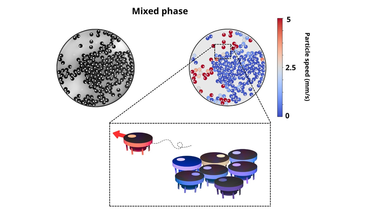 “Interestingly, with large clusters that dynamically change, a mixed configuration emerges in which cold areas coexist with hot ones. In equilibrium this is impossible, since such temperature differences would immediately cancel each other out through collisions,” said Professor Löwen.