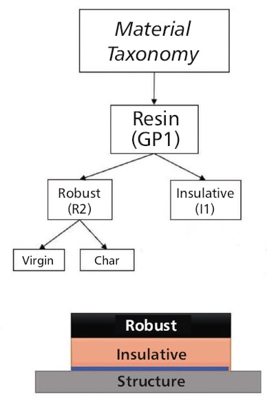 The robust layer is applied next and functions as the ablative layer that ablates away or vaporizes when subjected to extremely high temperatures such as those achieved during atmospheric entry. The formulation of the robust layer produces a gas layer as it vaporizes in the extreme heat that acts as a boundary layer. This boundary prevents heat from further penetrating the remaining robust material by pushing away the even hotter shock layer. The shock layer is a region of super-heated compressed gas, positioned in front of the Earth-facing bottom of the spacecraft during atmospheric entry, that results from the supersonic shockwave generated.