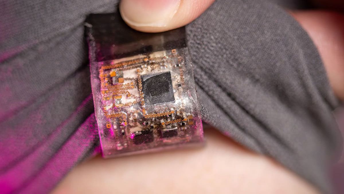 The device is a soft electronic patch that is glued onto a cloth armband. It integrates motion and muscle sensors, a Bluetooth microcontroller, and a stretchable battery into a compact, multilayered system. The system was trained from a composite dataset of real gestures and conditions, from running and shaking to the movement of ocean waves. Signals from the arm are captured and processed by a customized deep-learning framework that strips away interference, interprets the gesture, and transmits a command to control a machine such as a robotic arm, in real time.