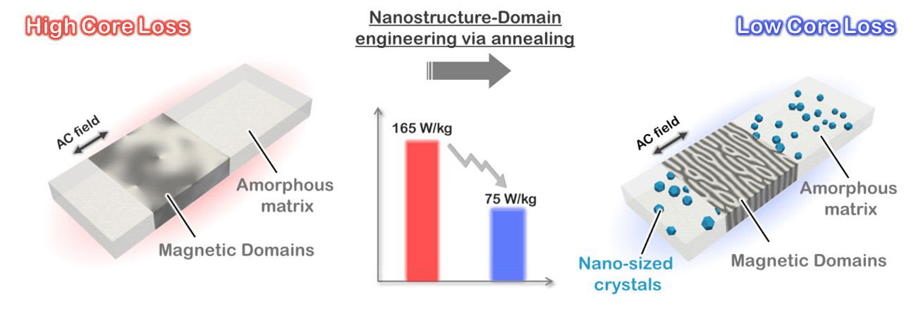 Our society's rapid pace of technological advancement is accompanied by an equally rapid growth in power consumption to meet our needs for AI-focused data centers, electric vehicles, and other applications. Efficient energy use has become a critical challenge. In power electronics, the performance of soft magnetic materials used in transformers, inductors, and other components is the key to improving their efficiency. Soft magnetic materials are metallic materials that respond quickly to external magnetic fields. However, as power electronics operate at increasingly higher frequencies, energy losses in these materials have grown, posing a serious efficiency challenge.