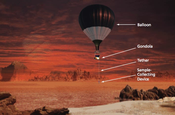 The document also discusses the broader implications of the technology for various planetary missions. For Mars, balloon platforms are proposed to sample water ice at the north pole. For Venus, balloons are considered the most viable means to descend to the surface and return with samples. The pyro sampling devices are also applicable for in-situ analyses and sample return from comets and asteroids.