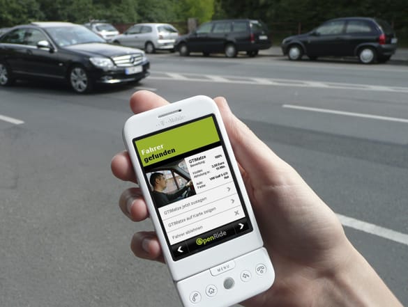 Matching offers are displayed in real time on the cellphone, and the search engine takes partial journeys, short detours, and the current position of the driver and potential passenger into account.