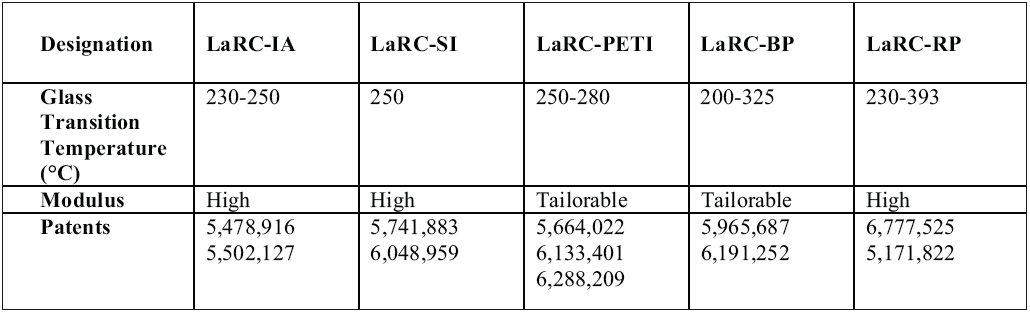 There is increasing interest in lightweight and ultra-lightweight structural concepts and materials within NASA’s exploration mission and as part of efforts to develop “green” aeronautics options. Polymers and polymeric composites are important elements in design and construction of the nation’s future aircraft and spacecraft. Langley Research Center (LaRC) in particular has very active programs in development of advanced engineering polymers for use as structural components, as films or coatings, or for high-temperature or acoustic insulation.