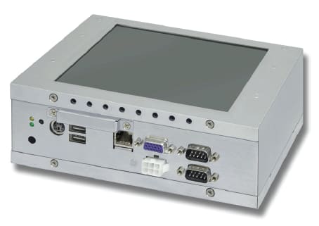 The computer offers scalability to meet specific demands with the capability to integrate a variety of EPIC compatible single board computers (SBCs). The ReadyPanel 6.5 panel computer is an applicationready Windows® CE 5.0 appliance for HMI environments offering a selection of Ampro ReadyBoard™ SBCs with Intel® processors from 400 MHz Celeron® to Core™ Duo. It can be configured with memory sizes up to 1GB DRAM and CompactFlash options up to 2GB. ReadyPanel includes Windows CE 5.0 on CompactFlash and provides PCstyle connectors for access to USB ports, Ethernet port (RJ45), dual serial ports (DB9), CRT video, PS/2 keyboard and mouse port, and audio. The computer operates over the temperature range of 0°C to 45°C and is DC-powered, using 5 V and 12 VDC inputs.