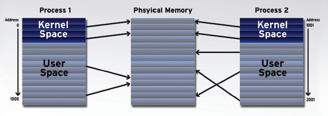 Virtual memory also offers memory protection. Each process is assigned its own address space and page table, similar to the memory protection available on Mentor Graphics' Nucleus operating system. If one process tries to access memory out of its range, an error will result. Communication of processes is achieved using shared memory. Therefore, through virtual memory, an engineer is allowed more freedom to develop complex applications.