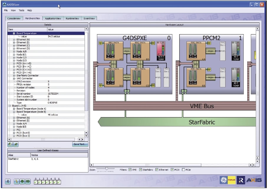 The development system has arrived, all the boards have been plugged in, and all the interconnect cables have been wired up. Now it is time for the engineer to establish whether all the jumpers are set correctly, boards are in the right slots, interconnect cables are installed correctly, etc. This can prove to be a laborious task without some form of automation. A tool which can probe all parts of the system and display the resultant configuration information graphically can be a boon; without such a tool, it can take a great deal of time to log into each node, extract the configuration and discovery data, and correlate the data across the system. Figure 1 shows how such a tool might look.