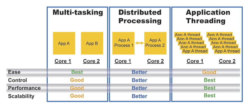 Multi-core processing, virtualization and hyper-threading functionality must be supported by a compatible CPU, chip set and BIOS. Various compiler, analyzer and cluster tools are available to support these applications.