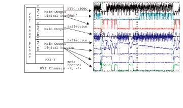 In the past, these systems have mainly been built with proprietary systems employing a large amount of custom software and hardware and long development times. With arbitrary waveform generators (arbs) and the PXI platform, customized raster/stroke video signals can be created in a cost-effective manner. Some key differentiators of the arb critical for the creation of multiple signals that comprise raster/stroke video include auxiliary digital pattern outputs and deep on-board waveform memory. With its timing and synchronization features, PXI provides the platform needed for multiple arb synchronization.