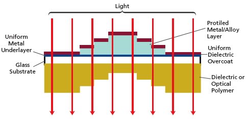 A mask as now envisioned would include thin metal and dielectric films having stepped or smoothly varying thicknesses (see figure). The thicknesses would be chosen, taking account of the indices of refraction and extinction coefficients, to obtain an acceptably close approximation of the desired spatial transmittance profile with a flat phase profile.
