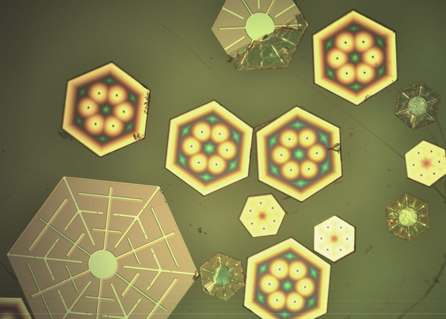 Each cell is formed on silicon wafers, etched, and then released in hexagonal shapes, with electrical contacts prefabricated on each piece - by borrowing techniques from integrated circuits and MEMS.