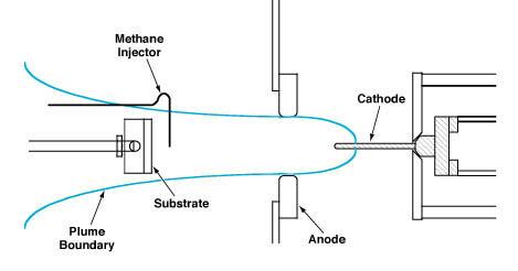 The success of the dc-arcjet approach has led to speculation on the utility of other thruster-type plasma sources for CVD of diamond. There is a large body of data from previous research on the performance and plume characteristics of electric propulsion devices; these data are available to support continuing efforts to understand the reaction kinetics and growth chemistry of diamond. One logical extension of the prior research would be an assessment of electric thrusters, other than dc-arcjet thrusters, for their potential to increase rates of deposition even further. MPD thrusters are among those that could be considered.