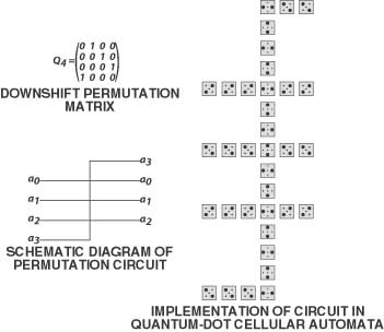 where n is the number of elements to be permuted. Figure 2 illustrates a proposed QCA circuit that would implement the permutation matrix Q4.