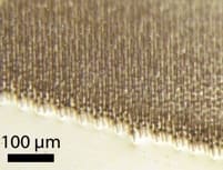 Each wire measures between 30 and 100 microns in length and only 1 micron in diameter. “The entire thickness of the array is the length of the wire,” notes Atwater. “But in terms of area or volume, just 2 percent of it is silicon, and 98 percent is polymer.”