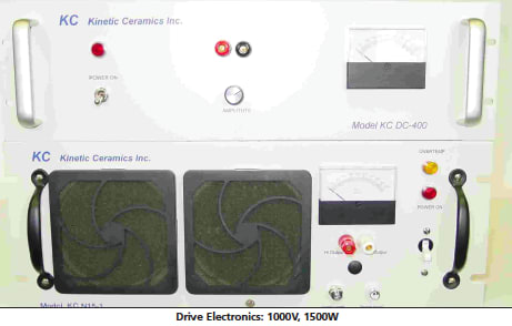 Ultra-fast elliptical oscillations require a two-channel high-bandwidth and highpower amplifier that can rapidly charge and discharge the piezoelectric stacks. This is achieved using a Class AB-1 linear amplifier, which produces 1500 watts and 6.3 Amps peak at 1000 volts with a bandwidth of 15,000 Hz. The external bias voltage adjustment enables input drive signal to be centered at zero volts while keeping the output drive voltage always positive.