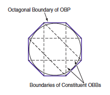 Starting with the second-highest level of the pyramid, each level is characterized by twice the horizontal spatial resolution of the level above it (see Figure 2). For example, at the highest level of the pyramid (coarsest resolution) there is a single terrain OBB that encloses all of the sensed data points. The model for each manipulator link is one low-resolution OBP. If no collisions between any of the OBPs and the coarsest-resolution terrain OBB are detected, then there is no need for further computation to detect collisions with terrain. On the other hand, if collisions are detected at the coarsest resolution, then tests for collisions are performed on each of the terrain OBBs at the second coarsest resolution. This process continues to successively finer levels of resolution until the finest resolution is reached or no more collisions are detected. Similar tests for collisions are performed with a similarly hierarchical model of the non-manipulator parts of the robot (body, cameras, sensors, suspension, and wheels).