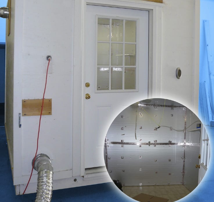 The first package, a single cardboard box, was selected to represent the packages in which new fluorescent lamps are sold. Many customers reuse these packages for storing used lamps and eventually transporting the used lamps for disposal or recycling. In each of ten replicate experiments, each box was loaded with 40 used low-mercury T4 fluorescent lamps and then dropped and shaken in a test chamber until the lamps were broken. In the following six hours, the level of mercury vapor inside the test chamber was measured and recorded. The single-layer box was the least effective in containing mercury vapor of all three groups, with airborne mercury vapor levels in the test chamber exceeding all workplace exposure levels, as defined by state and federal authorities.