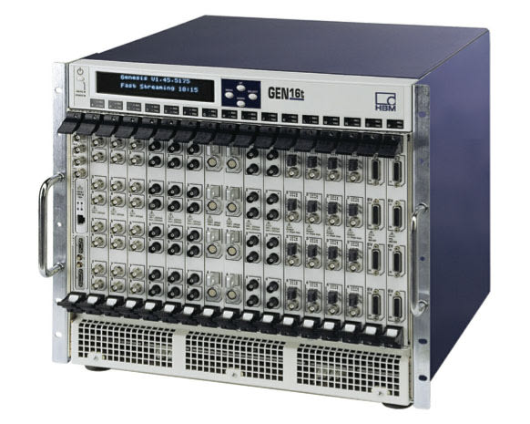 In addition, the system provides a stainless steel type 304 exterior that does not stain, corrode, or rust easily; has extended temperature operation; and meets the MIL standard specifications for shock and vibration of a rocket launch environment. The HBM system includes the 7600 fiber-optic transmitter and fiber-optic receiver; the Genesis mainframe, a 16-slot mainframe; and Perception software that provides real-time display, control, and analysis.