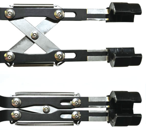 Handle design has been carefully examined to maximize comfort, limit weight, incorporate tether locations, and improve ergonomics. They have been designed with an off-axis offset for wiring harness clearance, while placing the connector axis of rotation close to the user’s axis of wrist rotation. This was done to eliminate fatigue during multiple connector panel servicing. To limit handle opening width, with user ergonomics in mind, the pliers were designed using a parallel jaw mechanism. A cross-link mechanism was used to complete this task, while ensuring smooth operation.