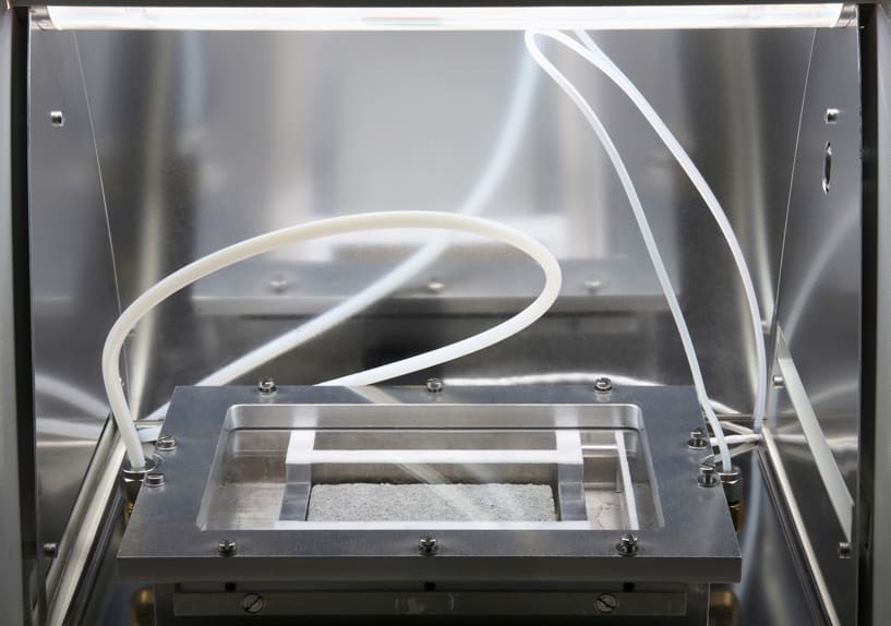 To begin with, F.C. Nüdling produced a range of sample slabs incorporating different surfaces, colors, types of cement, and TiO2 contents. Since the nitrogen oxide degradation rates achieved using standard commercial photocatalytic cement (cement that reacts to solar radiation) proved unsatisfactory, the company had to develop its own, more effective formula.