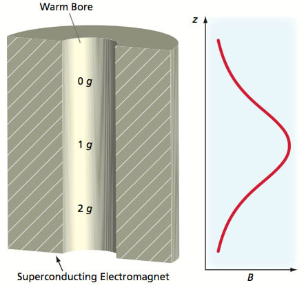 of diamagnetic molecules (e.g., water molecules) and thus can be levitated by use of sufficiently strong magnetic fields having sufficiently strong vertical gradients.