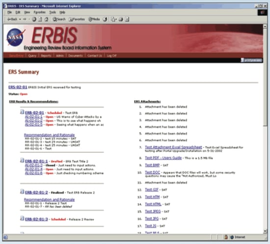 Managing the people, data, and activities associated with NASA’s Engineering Review Process (ERP) presents challenges to engineers and mission planners. The ERP generates paperwork, involves the coordination of Engineering Review Board (ERB) members, and requires complete and careful documentation of engineering issues, in progress and resolved. Essential to any process is the ability of a user community to capture, store, and retrieve information. The type of information generated throughout the ERP builds the database of information that enables metrics to be established and lessons learned to be tracked.