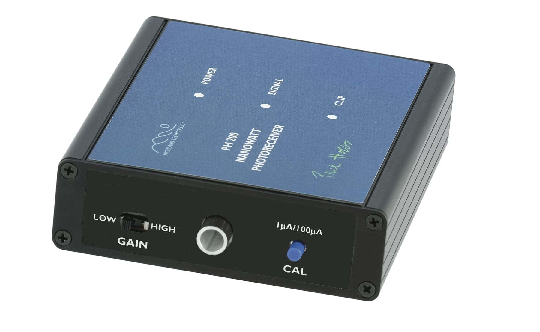 The Highland Technology (San Francisco, CA) PH200 is the first product in the 'PH' series of extreme-performance photonic instruments. The PH200 Nanowatt Photoreceiver, designed in collaboration with Phil Hobbs, is a free-space optical/electrical converter that provides near shot noise performance in a rugged, compact package. The unique photon feedback architecture delivers a bandwidth greater than 1 MHz, with an unprecedented combination of linearity, bandwidth, and dynamic range for 10nA to 100?A photodiode signals.