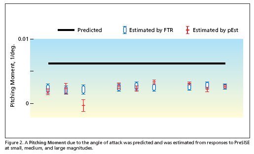 Figure 2 shows results, for one of the derivatives, from 9 PreSISE maneuvers at Mach 0.75. At this Mach number, the airplane is statically unstable. The first set of data represents results from the use of small PreSISE inputs, the second set from medium inputs, and the third set from large inputs. For the derivative in question, the estimate was the same, independent of input size or analysis technique. Typically, the longitudinal derivatives were estimated with acceptably high accuracy and, using FTR, converged to final values after about 5 seconds of inputs. Some lateral-directional derivatives were not estimated as accurately, because signal-to-noise ratios were low. Efforts to optimize the inputs for increased accuracy in estimation of the derivatives are underway.