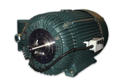 Figure 4 shows integrated magnetic bearings supporting a 250-horsepower industrial motor. The integration was achieved by modifying the shaft and the bearing housings to accommodate the radial bearings. An optional thrust bearing provides axial load capacity for applications such as vertical motors.