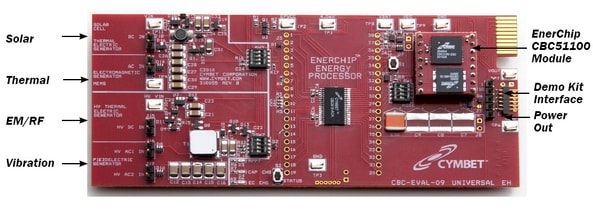 Cymbet Corporation (Elk River, MN) has introduced its EnerChip™ EP CBC-EVAL-09 Universal Energy Harvesting evaluation kit. The EVAL-09 supports all types of ambient energy harvesting from light, vibration, thermal gradients, and flow/motion.