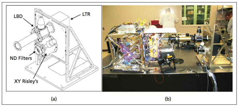 A compact and portable target assembly (Fig. 1) has been developed to measure the boresite alignment of LRO’s Lunar Orbiter Laser Altimeter (LOLA) instrument at the spacecraft level. The concept for this target assembly has evolved over many years with earlier versions used to test the Mars Observer Laser Altimeter (MOLA), the Geoscience Laser Altimeter System (GLAS), and the Mercury Laser Altimeter (MLA) space-based instruments. These earlier laser altimeters were single ranging channel instruments, but as demonstrated with the five-channel LOLA instrument, the target assembly can simultaneously measure the co-boresite alignment of multiple transmitter laser beams and receiver channels (Fig. 2).