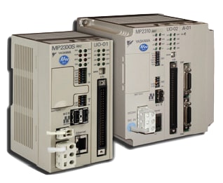 The MP2310iec machine controller offer three models that allow up to three local modules of digital or analog I/O to be controlled. It supports EtherNet/IP and Modbus/TCP for connectivity to most HMI and PLCs. The controller can operate local Sigma-5 outputs and can interface third-party remote I/O modules including Phoenix, Wago, and Opto 22.