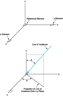 The basic equation for the phase of the incident signal can readily be manipulated to obtain the following equations for the colatitude (θ) and the azimuthal angle (Φ) that specify the direction of incidence: