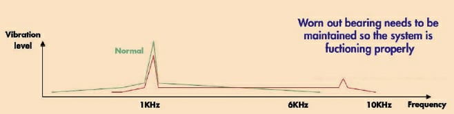 Vibration analysis is commonly used in rotating machinery to detect loose or worn bearings, equipment misalignment, or low fluid levels that might cause a change in vibration. Typically this vibration will occur at frequencies between 6KHz and 10KHz.