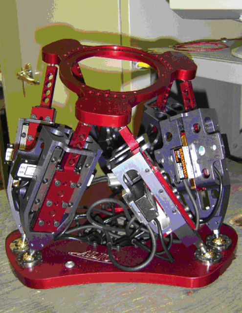 For the hexapod in this application, there is not a closed form solution to this problem that is practical for real-time execution. Instead, the solution is most readily obtained by performing an iterative process involving estimating the solution, evaluating the estimation, forming a new estimation, evaluating the new estimation, and so on until the estimation is below some error threshold. This iterative process is also done in one of the controller’s program buffers.