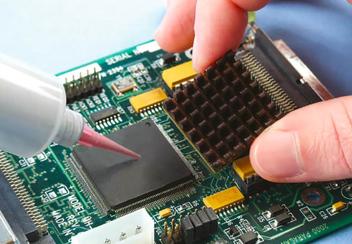 Thermally conductive adhesives are uniquely qualified to meet the increasingly diverse requirements of advanced electronics systems. From their traditional use as fastening materials, adhesives find wide application in bonding and encapsulation in nearly every application segment, including military/aerospace, medical, automotive, and industrial, among others. In their traditional application in computer and communications systems, thermally conductive adhesives have long played a vital role at the chip level for die attach, at the PCB level for heat sink bonding, and at both the chip and board levels for all types of thermal management methods.