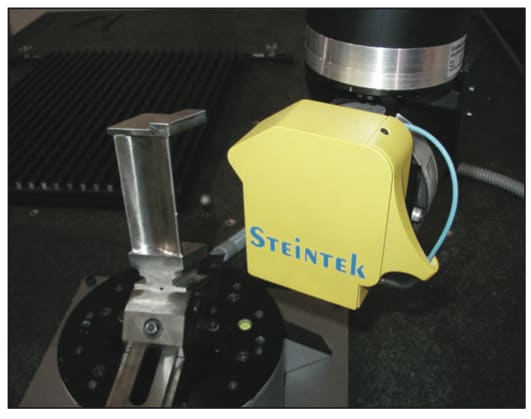 The MAXOS makes measurements with a single point of concentrated light rather than a touch probe. The light is measured using triangulation by a camera like a conventional laser scanner. However, the MAXOS provides higher accuracy than any laser scanner and provides accurate measurements on shiny surfaces because it reads the very center of the point of light. The MAXOS can inspect turbine blades without having to apply a matt coating like other non-contact scanning systems, which introduces dimensional inaccuracy.