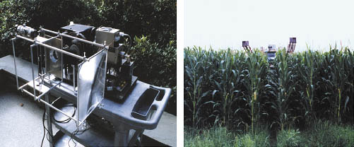 An optoelectronic instrument, known as a plant fluorescence sensor, is being developed for use as a working tool in agricultural settings. This instrument is a remote, passive monitor that provides a means of discerning plant stress at very early stages. With sufficient warning, the user could provide timely applications of fertilizer, water, and/or pesticide to achieve maximum crop yield at minimum cost. Figure 1 presents two views of the plant fluorescence sensor. The instrument is the subject of U. S. Patent 5,567,947.